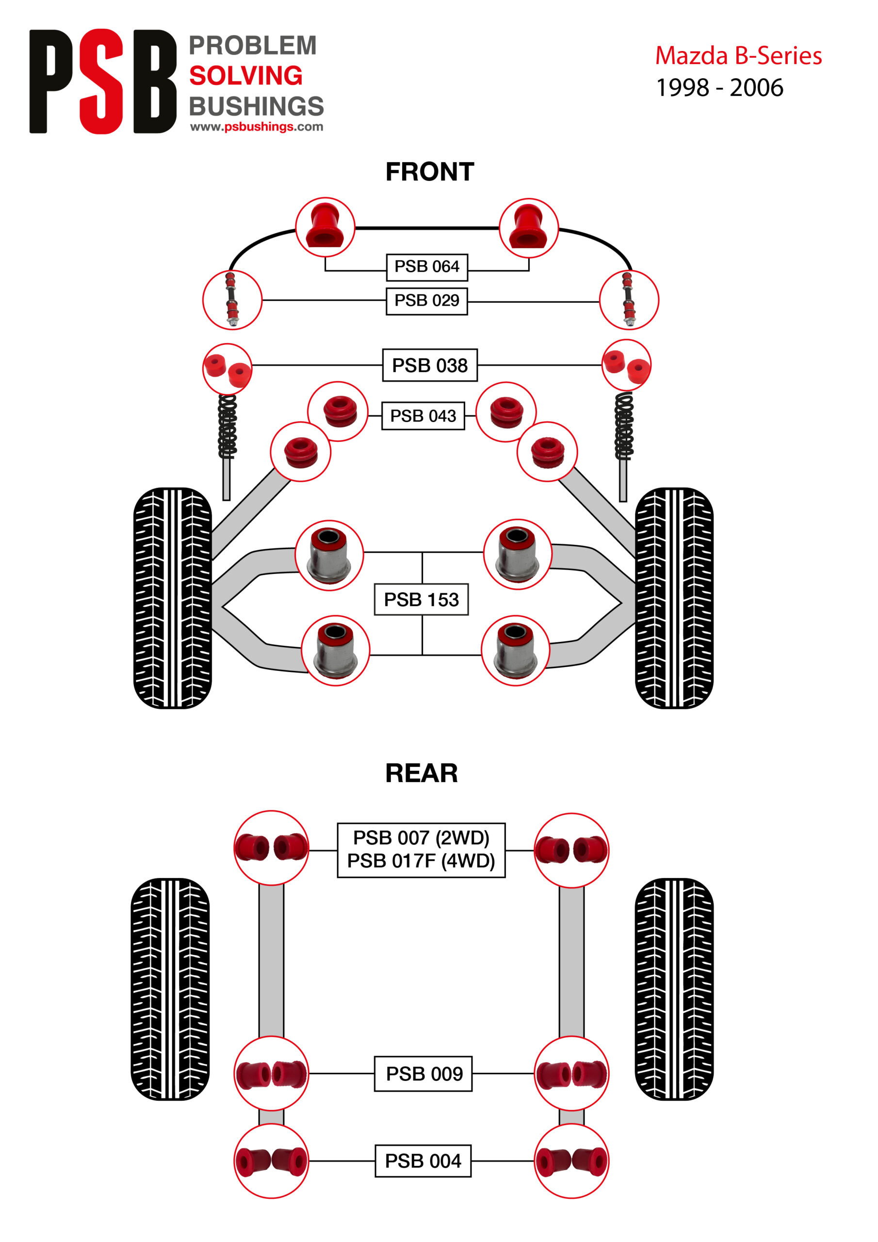 • 2x Mazda B-Series (98-06) Front ARB 23mm Polyurethane Bushing Kit