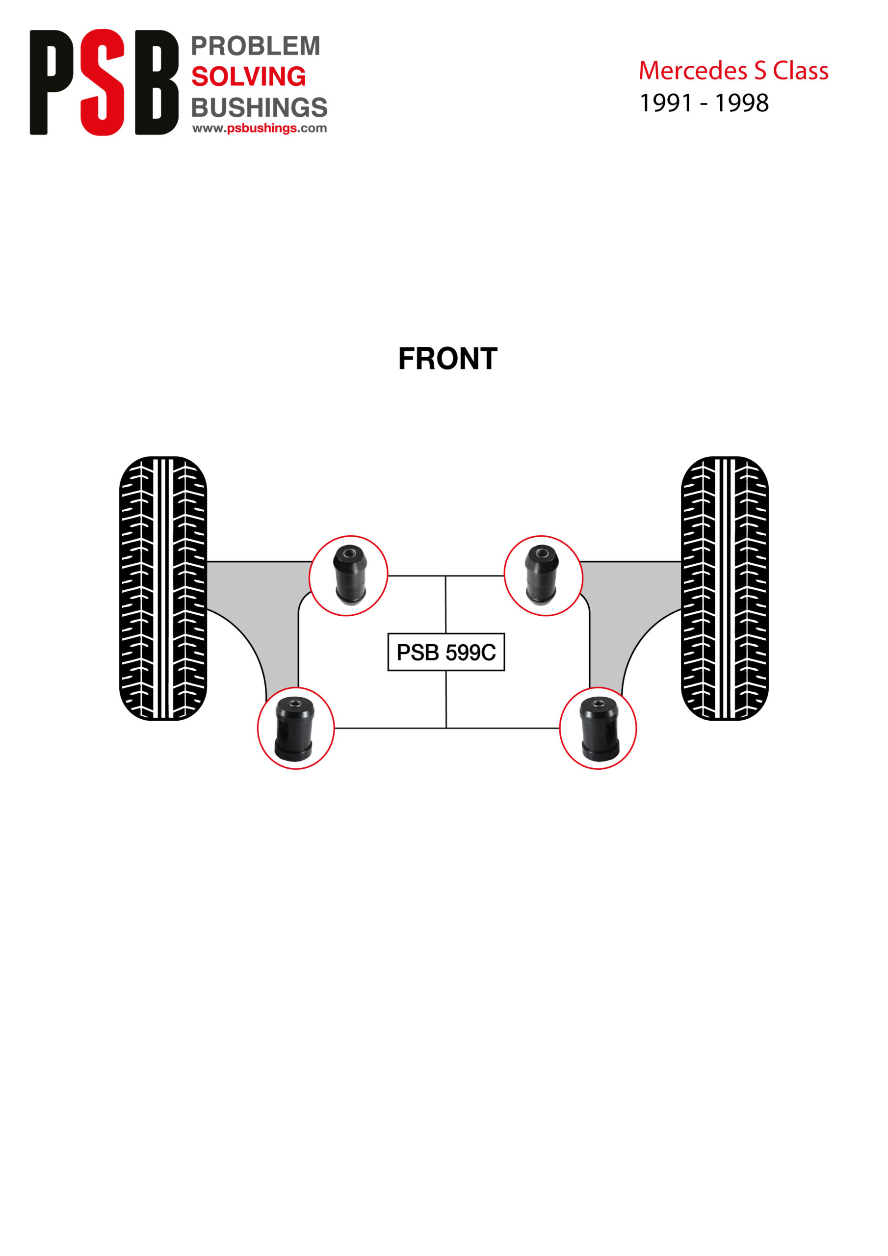 4x Mercedes S Class (91-98) Complete Front Lower Arm PSB Polyurethane Bushing Kit