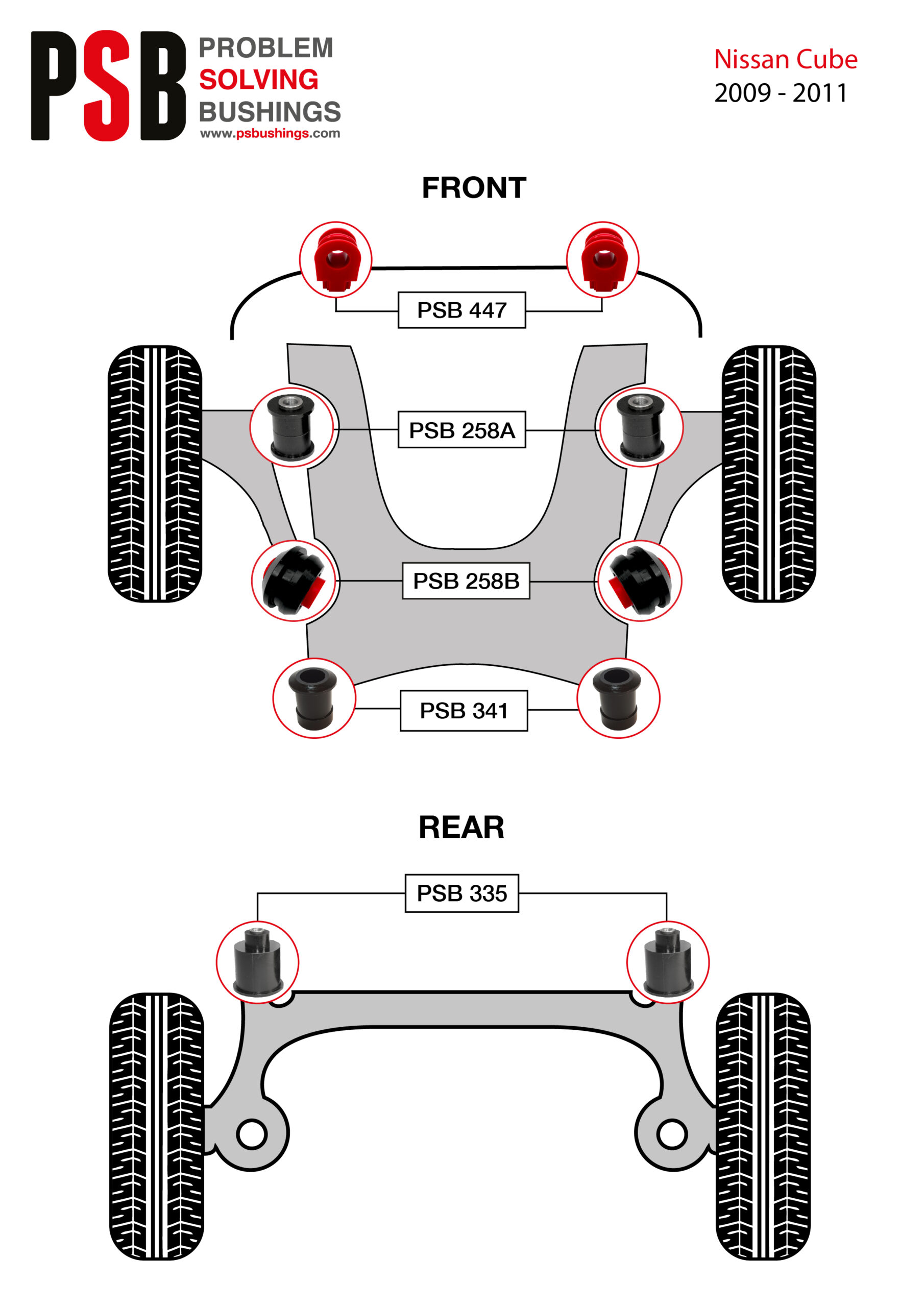 • 2x Nissan Cube (09-11) Front Sub Frame PSB Polyurethane Bushing Kit