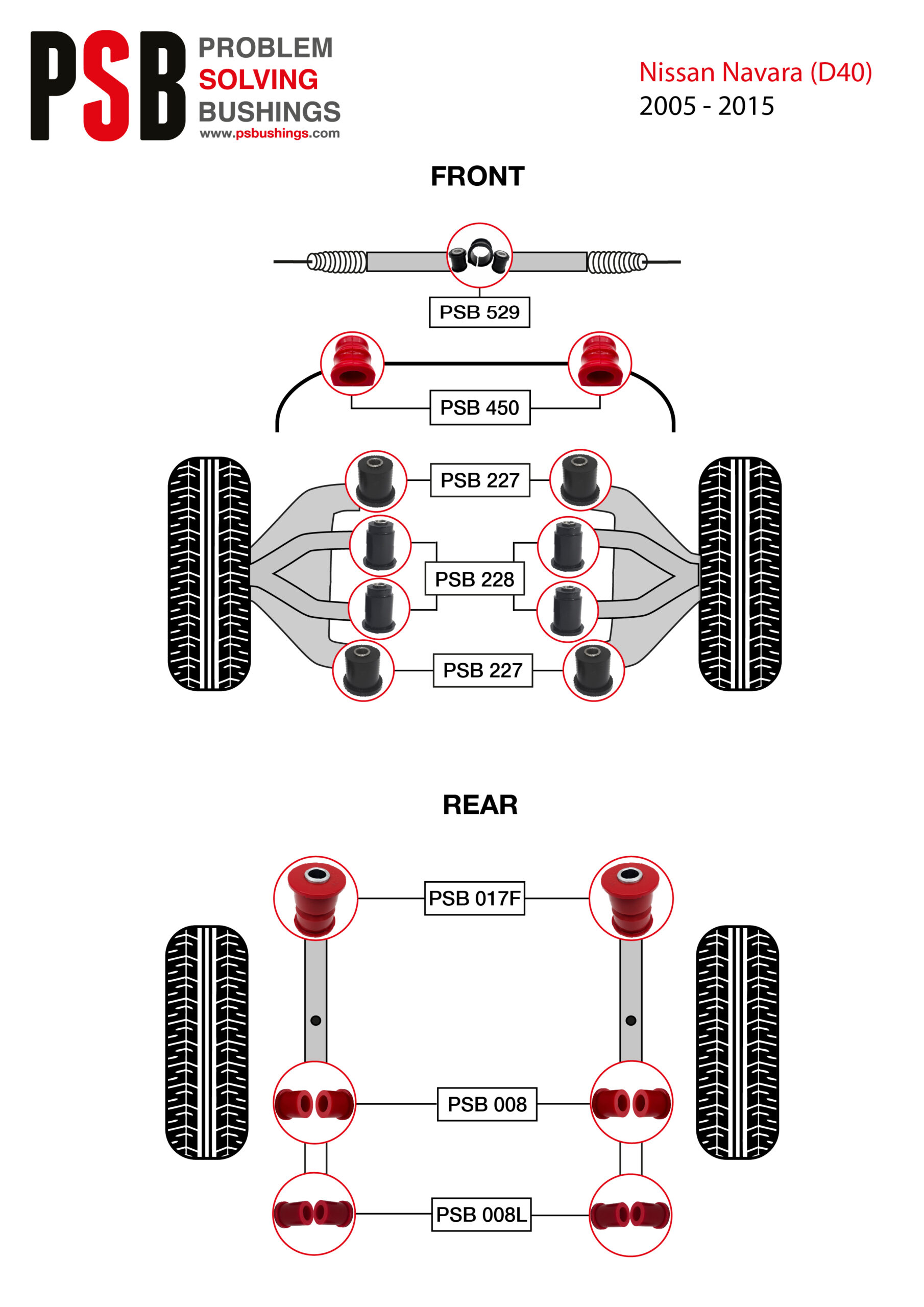 2x Nissan D40 Navara (05-15) Front Anti Roll Bar 30mm PSB Polyurethane Bushing Kit