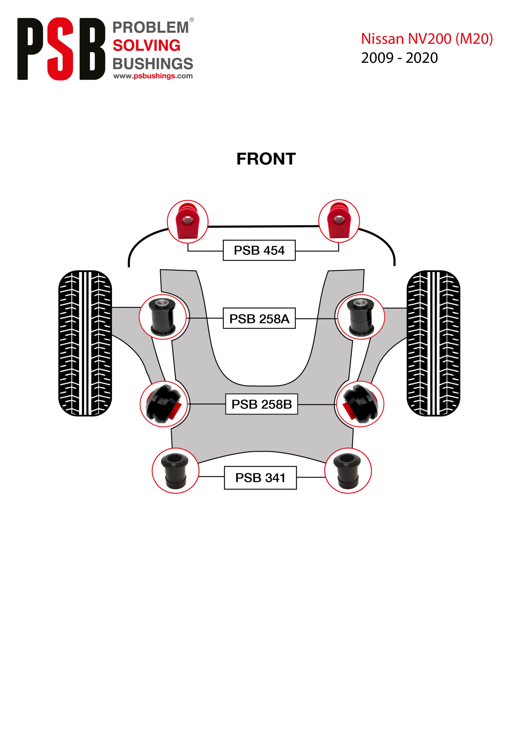 • 2x Nissan NV200 (09-20) Front Sub Frame PSB Polyurethane Bushing Kit