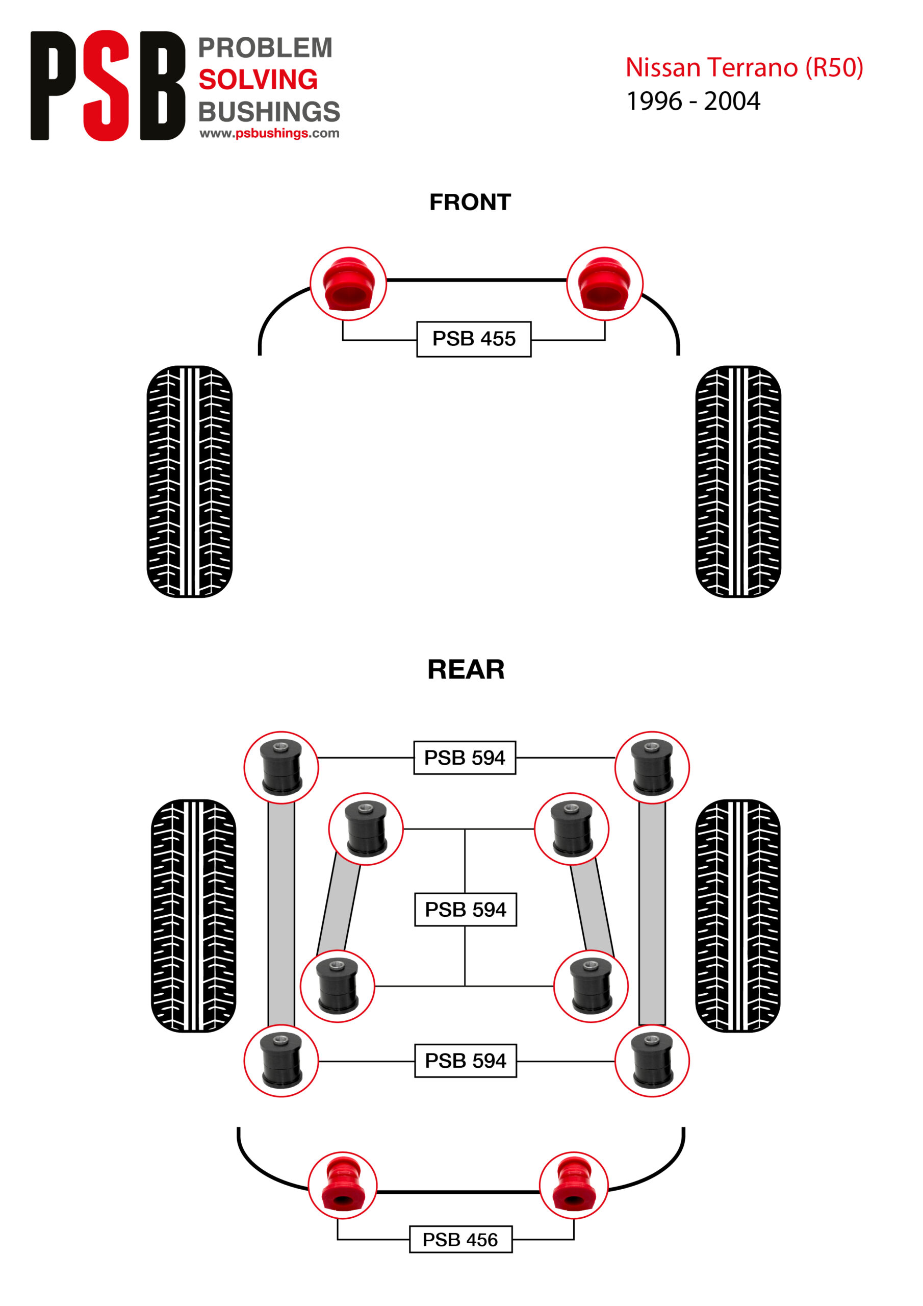 8x Nissan Terrano R50 (96-04) Upper/ Lower Rear Arm PSB Polyurethane Bushing Kit