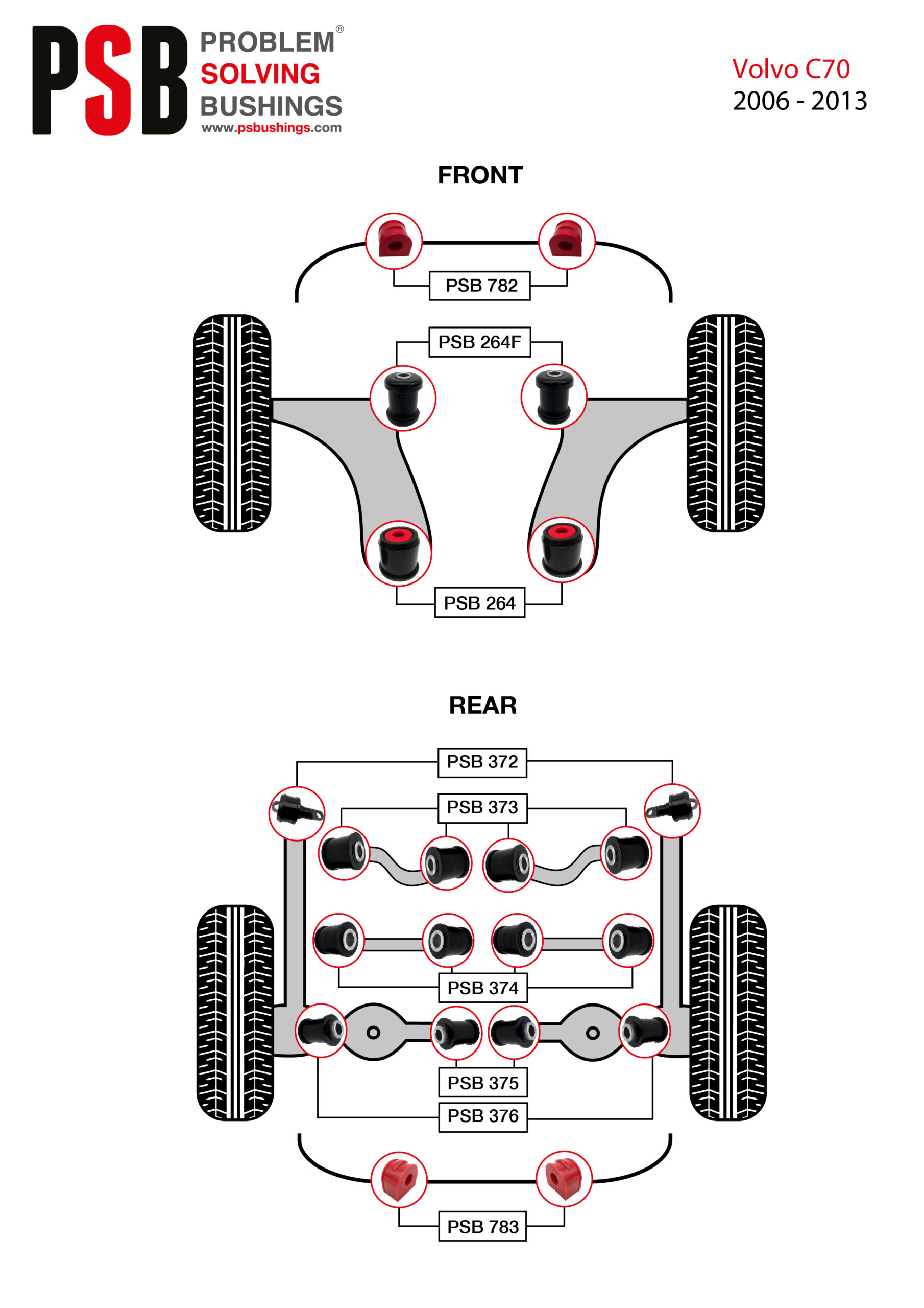 • 4x Volvo C70 (06-13) Complete Front Wishbone Polyurethane Bush Kit
