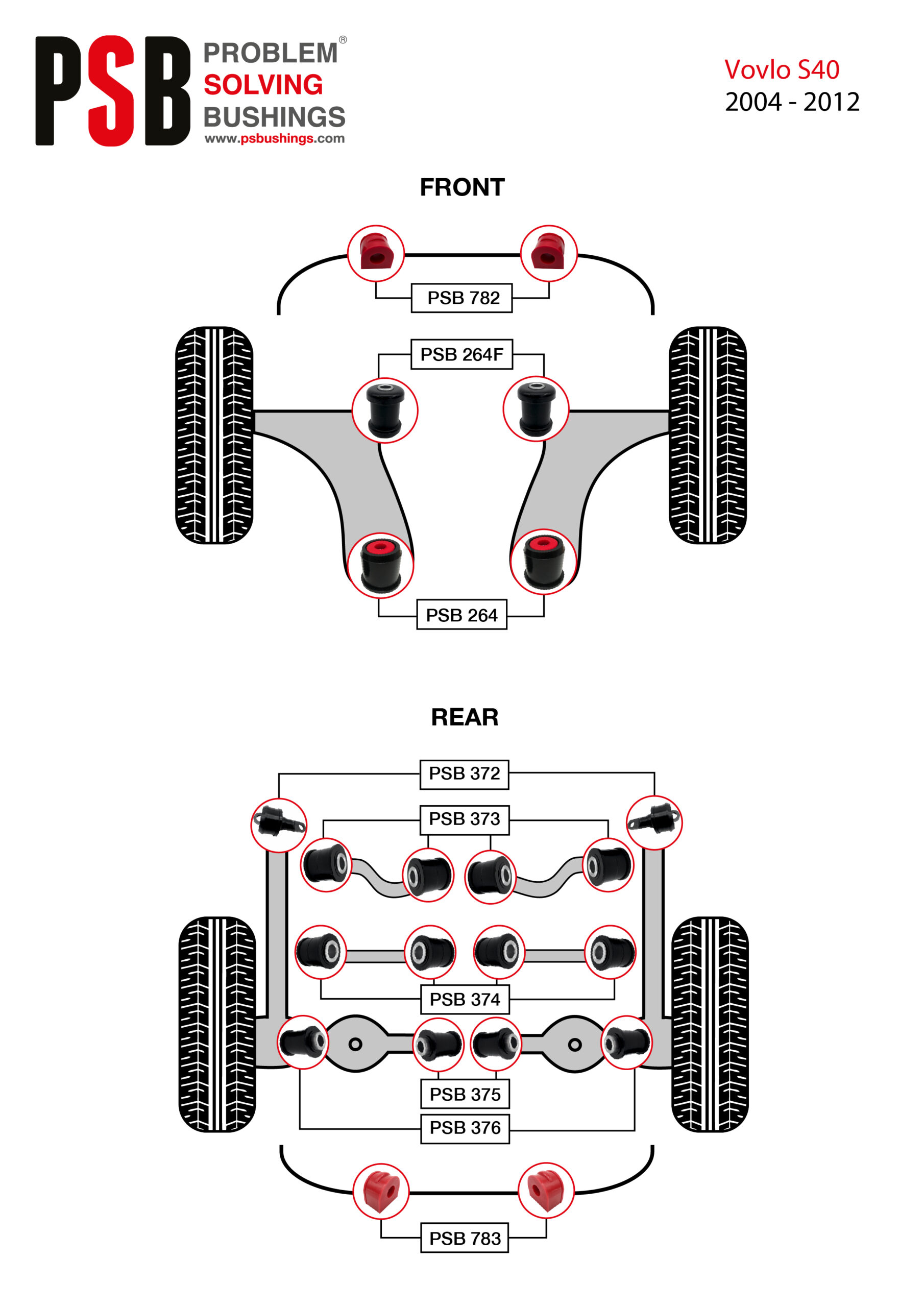 • 22x Volvo S40 (04-12) Complete Front & Rear Wishbone Polyurethane Bushing Kit