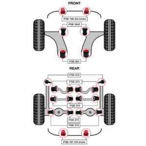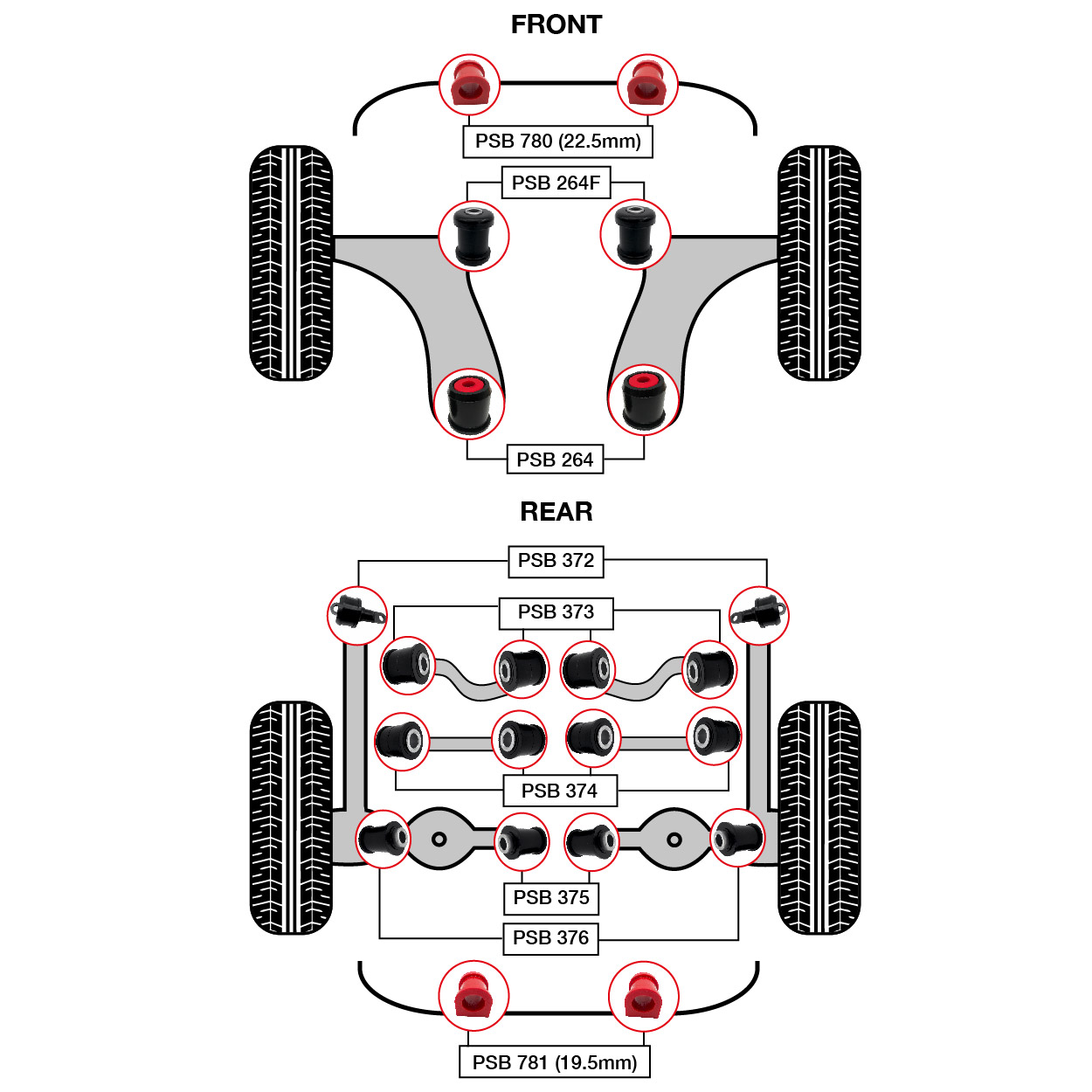 22x Mazda 5 (05-10) Complete Front with ARB 22.5mm & Rear with ARB 19.5mm Wishbone Polyurethane Bushing Kit (Part No. PSB264F/264/372/373/374/375/376/780/781)