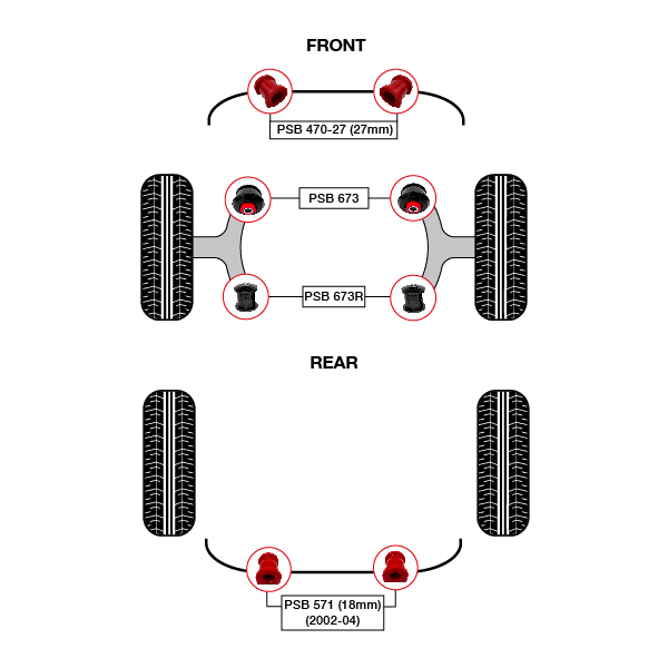 6x Honda CR-V (02-06) Front Lower Arm with ARB 27.2mm & Rear ARB 18mm PSB Polyurethane Bushing Kit (Part No. PSB470/571/673/673R)